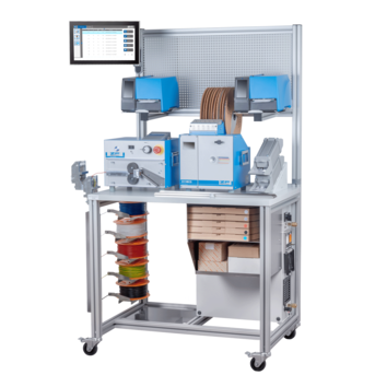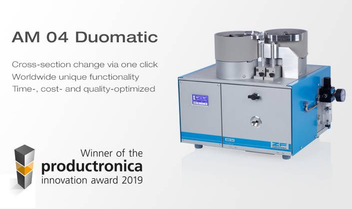 Elektropneumatski pogonjen modularni stroj za skidanje izolacije i zakivanje koristi se za učinkovitu obradu labavih izoliranih Z + F ferula s presjecima od 4 do 6 mm² (AWG 12 - 10) i duljinama zakivanja od 8 do 18 mm. Posebnost: Dva presjeka u svim duljinama mogu se istovremeno obraditi. Pritiskom na tipku možete prelaziti između postavljenih presjeka.