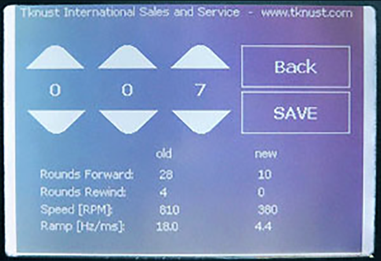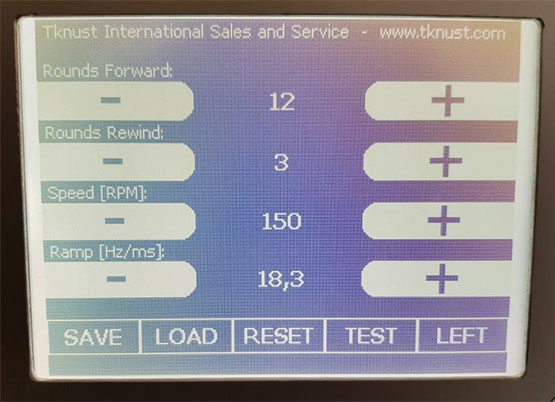 Broj okreta, naprijed kao i natrag, potrebno je odabrati. Za otpuštanje materijala potrebno je koristiti pokret unatrag. Odabir vrednosti „0“ znači da se motor okreće samo ulijevo ili udesno. Ovo bi moglo biti potrebno za "odmotavanje" krajeva kabela.